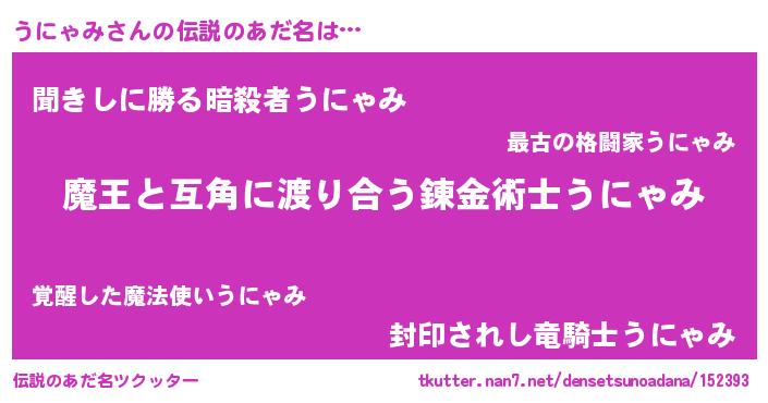 | 意味不明あだ名 | 『住所不定無職うにゃみ(85歳)』 |