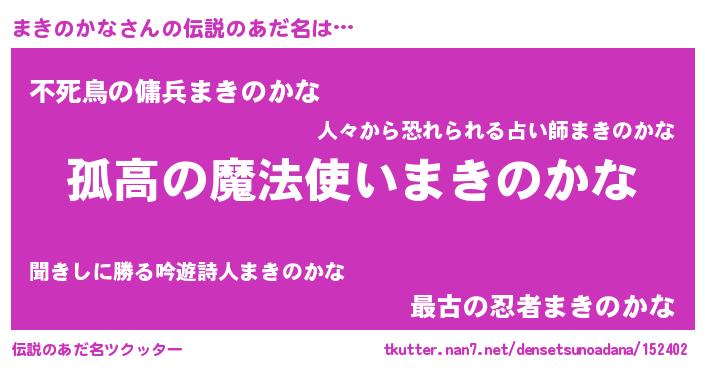 | 胡散臭い通販商品みたいなあだ名 | 『信頼と実績のサプリメント…その名も「まきのかな」』 |