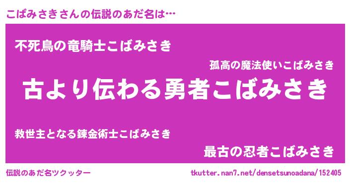| 意味不明あだ名 | 『永久保存こばみさき』 |
