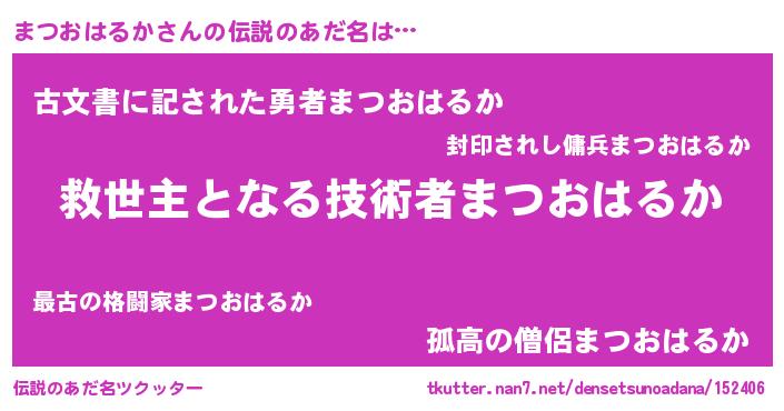 | ヘコむあだ名 | 『まつおはるか(笑)』『まつっちょ』 |