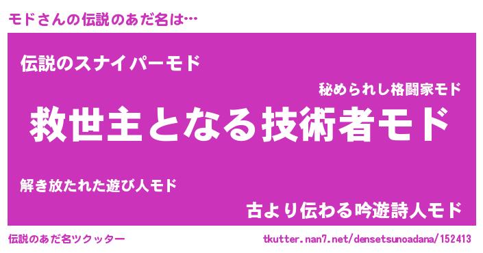 | ヒーロー風カッコイイあだ名 | 『慈愛の使者モド』『仮面モドダー』 |