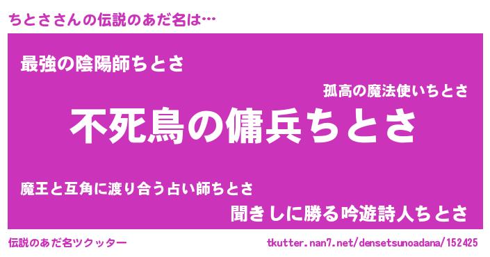 | 男性向けラノベタイトル風あだ名 | 『この素晴らしい世界にちとさを!』 |