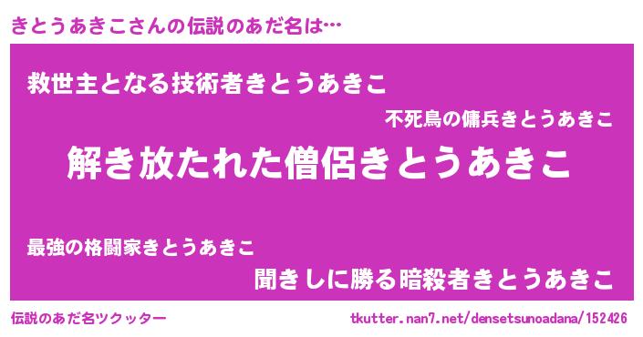 | 意味不明あだ名 | 『とにかく怪しいきとうあきこ』 |