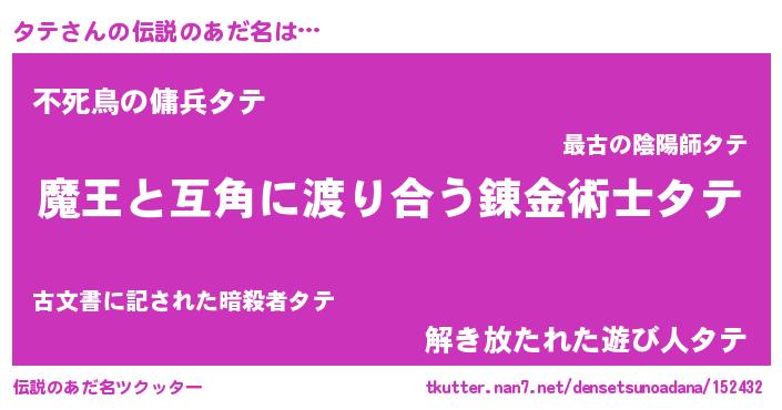 | ヒーロー風カッコイイあだ名 | 『愛の使者タテ』『スーパータテ』 |