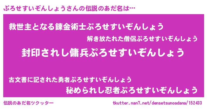 | 2回繰り返すあだ名 | 『ぷろぷろ』『ぼそぼそ』『ぷぷろろ』 |