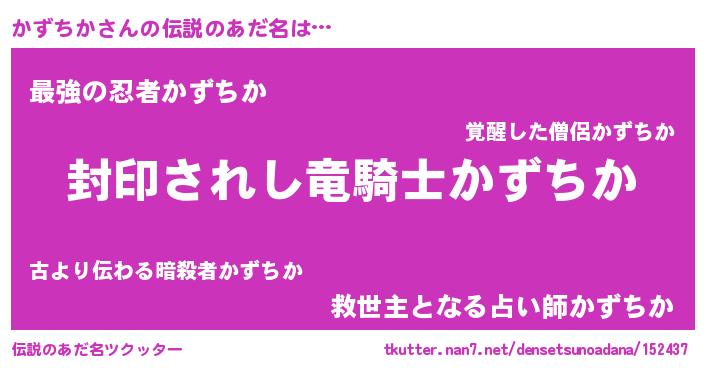 | ヒーロー風カッコイイあだ名 | 『スーパーカズチカ』『天弓騎士カズ』 |