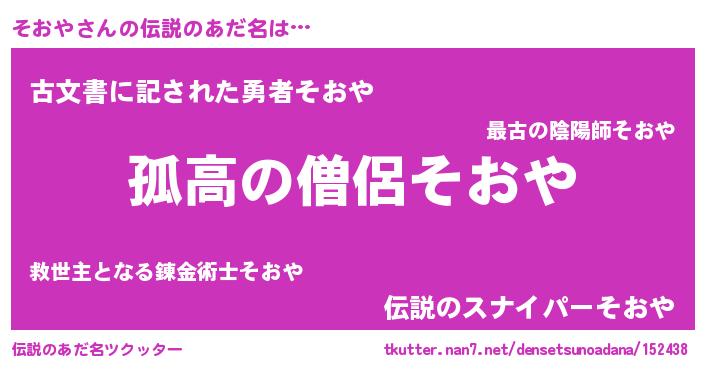 | ヒーロー風カッコイイあだ名 | 『仮面ソオダー』『炎刃騎士ソオ』 |