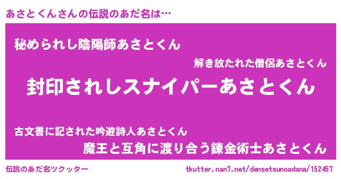| 意味不明あだ名 | 『住所不定無職あさとくん(79歳)』 |