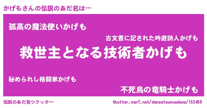 | 男性向けラノベタイトル風あだ名 | 『ノーゲーム・ノーカゲモ』 |