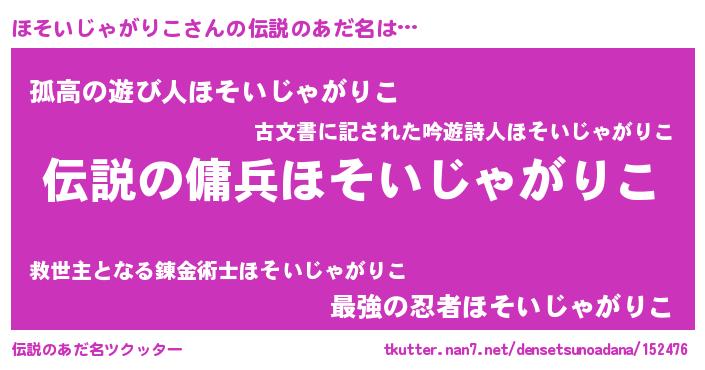 | ヒーロー風カッコイイあだ名 | 『スーパーホソイジャガリコ』 |