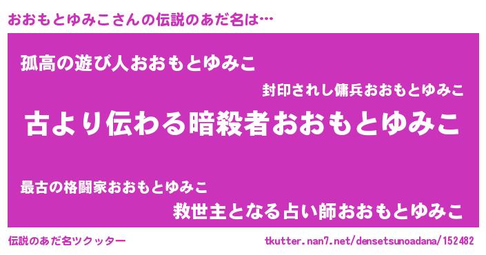 | ヘコむあだ名 | 『おおもとゆみこ(爆)』『おおぷりん』 |