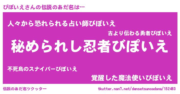 | 女子向けラノベタイトル風あだ名 | 『びぽいえの雑貨屋さん』『闇のびぽいえ』 |