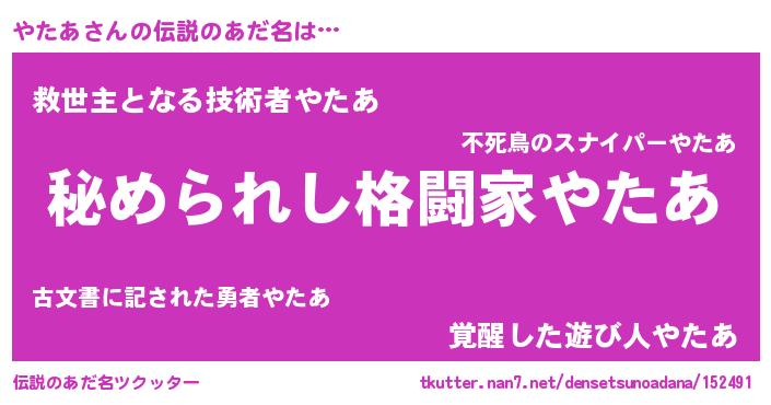 | 意味不明あだ名 | 『やたあフォーエバー』『自称やたあ』 |