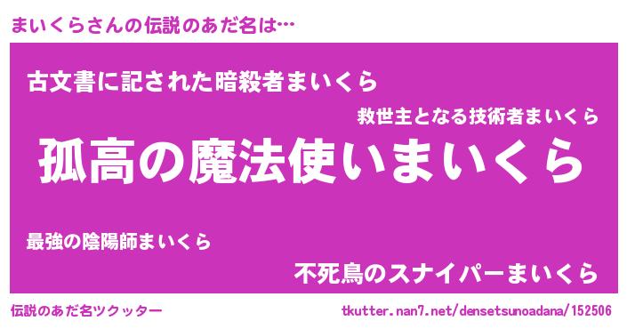 | 胡散臭い通販商品みたいなあだ名 | 『信頼と実績のサプリメント…その名も「まいくら」』 |