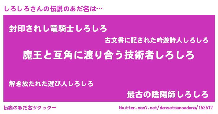 | ヒーロー風カッコイイあだ名 | 『愛の使者しろしろ』『スーパーシロシロ』 |