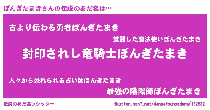 | ヘコむあだ名 | 『ぼんふぇ~』『ぼんぎたまき(遠い目)』 |