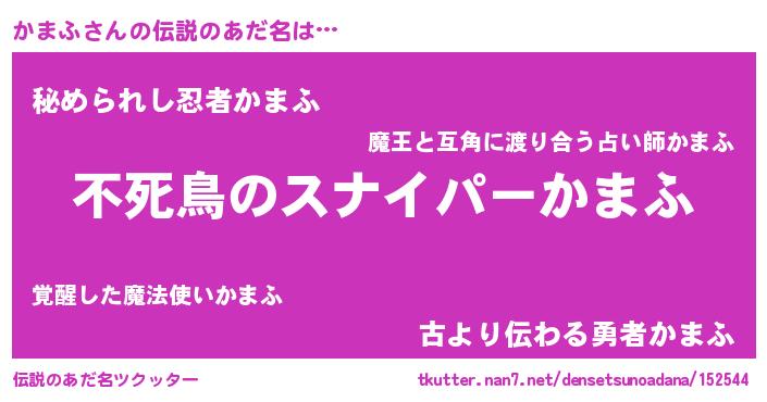 | ヒーロー風カッコイイあだ名 | 『スーパーカマフ』『超時空戦士カマフ』 |