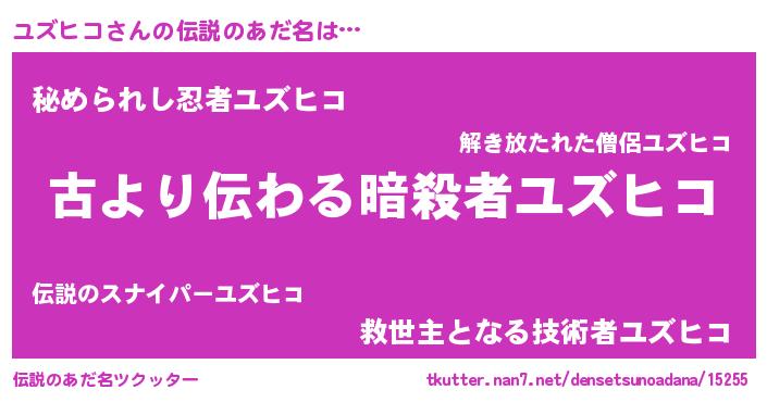 | ヒーロー風カッコイイあだ名 | 『ネオユズヒコ』『超時空戦士ユズヒコ』 |