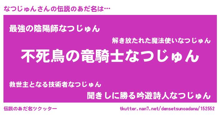 | 男性向けラノベタイトル風あだ名 | 『なつじゅんに滅ぼされるだけの簡単なお仕事です』 |