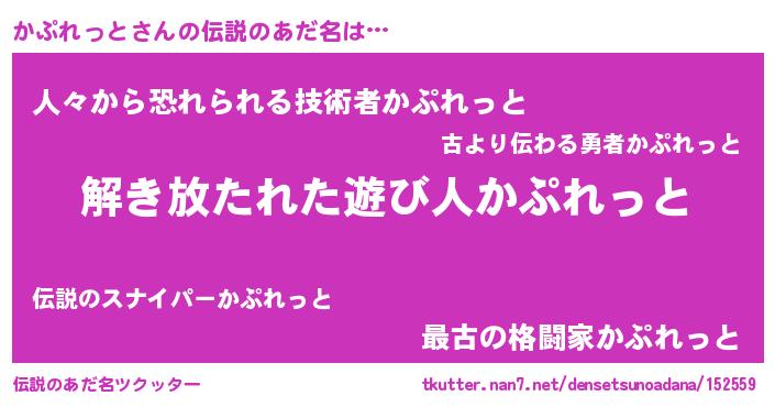 | 男性向けラノベタイトル風あだ名 | 『かぷれっとの嫁は女の子じゃないと思った?』 |