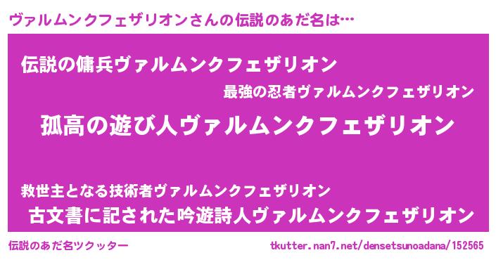 | ファンタジー風あだ名 | 『ファントムヴァス』『ヴァルヴァーナ』 |