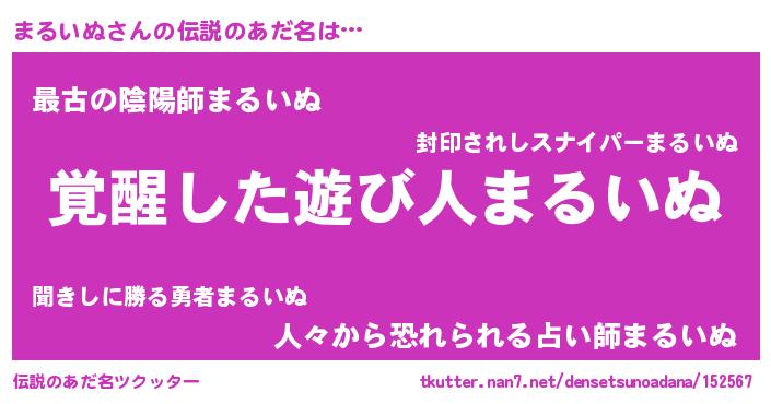 | 男性向けラノベタイトル風あだ名 | 『まるいぬの嫁は女の子じゃないと思った?』 |