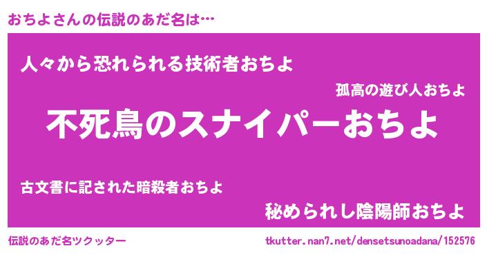| 男性向けラノベタイトル風あだ名 | 『おちよに滅ぼされるだけの簡単なお仕事です』 |