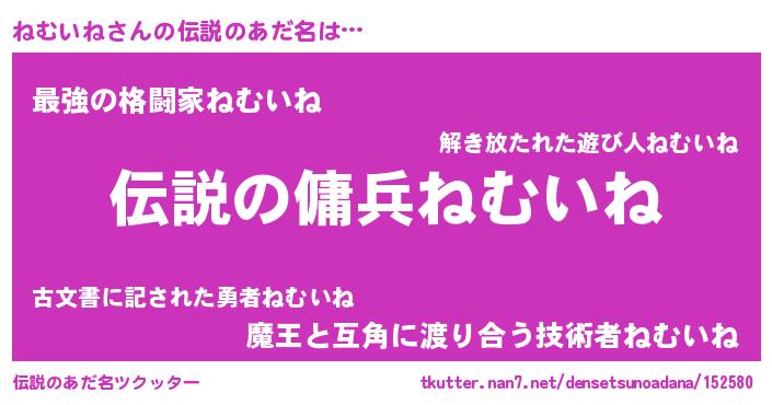 | ヒーロー風カッコイイあだ名 | 『超時空戦士ネムイネ』『魔戒騎士ネム』 |