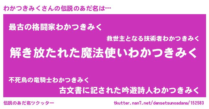 | 胡散臭い通販商品みたいなあだ名 | 『伝統あるサプリメント…その名も「わかつきみく」』 |