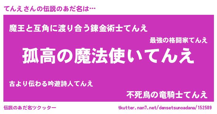 | ヒーロー風カッコイイあだ名 | 『暗黒騎士テン』『愛の使者てんえ』 |
