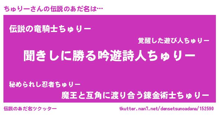 | ヘコむあだ名 | 『ちゅりー(笑)』『ちゅにゅー』 |