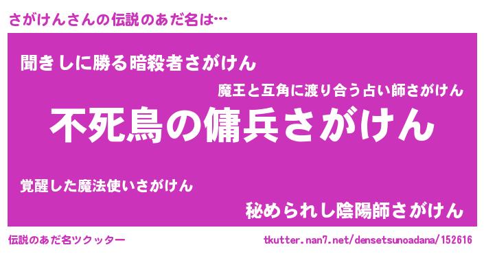 | ヒーロー風カッコイイあだ名 | 『スーパーサガケン』『仮面サガダー』 |