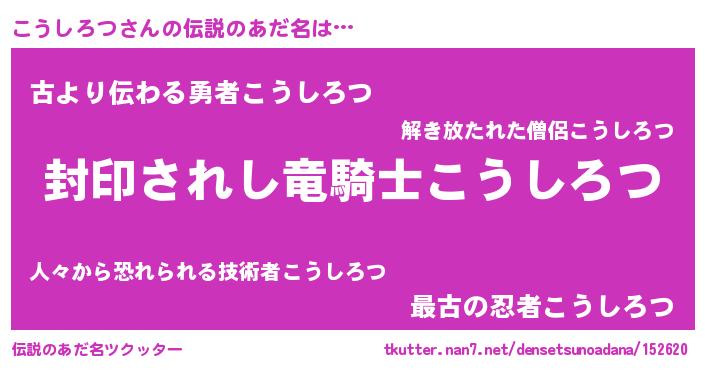 | 男性向けラノベタイトル風あだ名 | 『コウシロツアートオンライン』 |