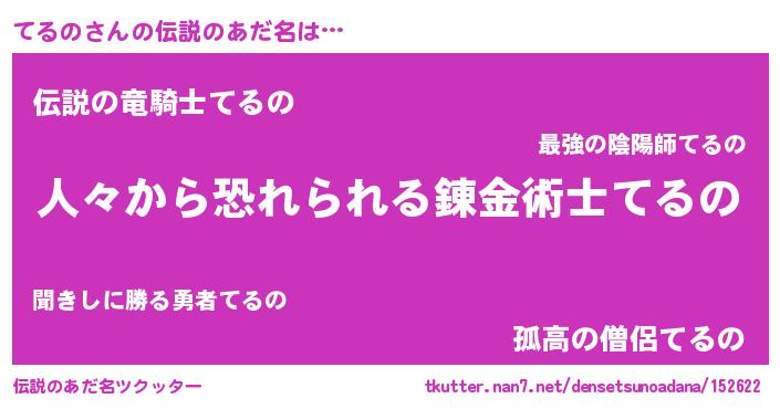 | 男性向けラノベタイトル風あだ名 | 『魔弾の王とてるの』 |