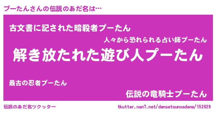 | 意味不明あだ名 | 『住所不定無職プーたん(84歳)』 |