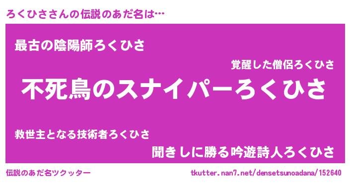 | ヒーロー風カッコイイあだ名 | 『スーパーロクヒサ』『仮面ロクダー』 |
