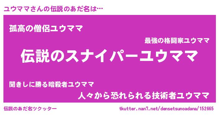 | 意味不明あだ名 | 『自称ユウママ』『めかぶ科ユウママ属』 |