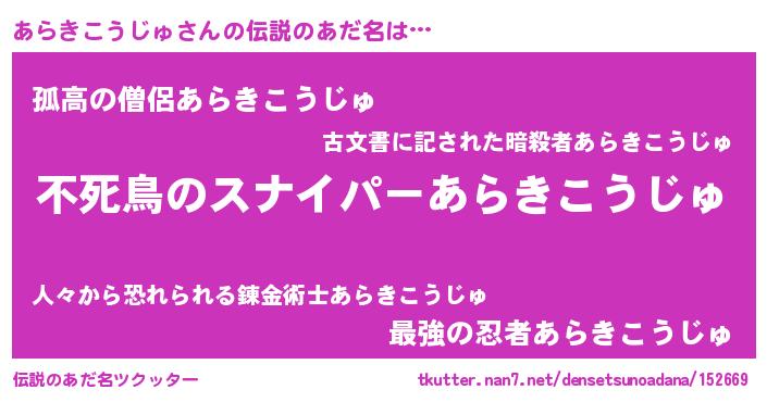 | 意味不明あだ名 | 『自称あらきこうじゅ』 |