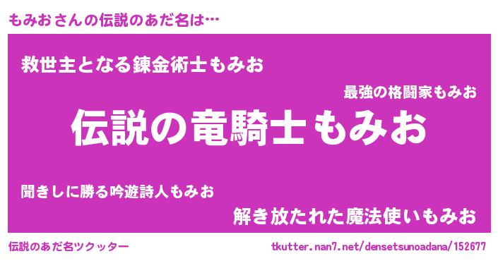| 女子向けラノベタイトル風あだ名 | 『もみおアンティーク』 |