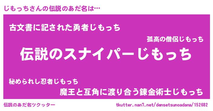 | 意味不明あだ名 | 『自称じもっち』『たけのこ科じもっち属』 |