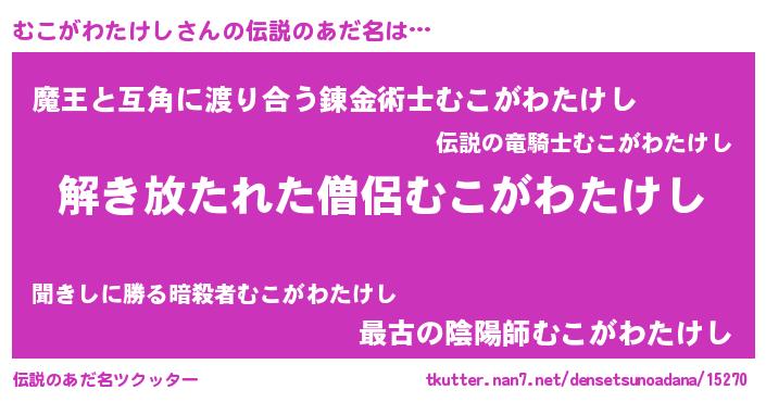 | 欧米人風あだ名 | 『アンジェラ・むこがわたけし』 |