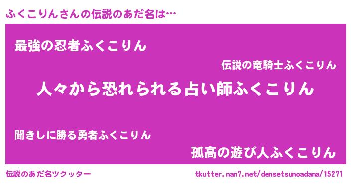 | 胡散臭い通販商品みたいなあだ名 | 『ガンによく効くアガリクス…その名も「ふくこりん」』 |