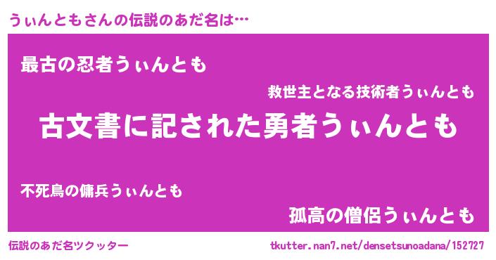 | 胡散臭い通販商品みたいなあだ名 | 『あなたにだけ特別に提供する世界で10本だけ現存している希少なブランデー…その名も「うぃんとも」』 |