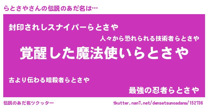 | ヒーロー風カッコイイあだ名 | 『天弓騎士ラト』『スーパーラトサヤ』 |