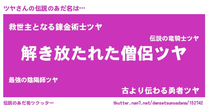 | 女子向けラノベタイトル風あだ名 | 『ツヤの卵を拾いまして』『闇のツヤ』 |