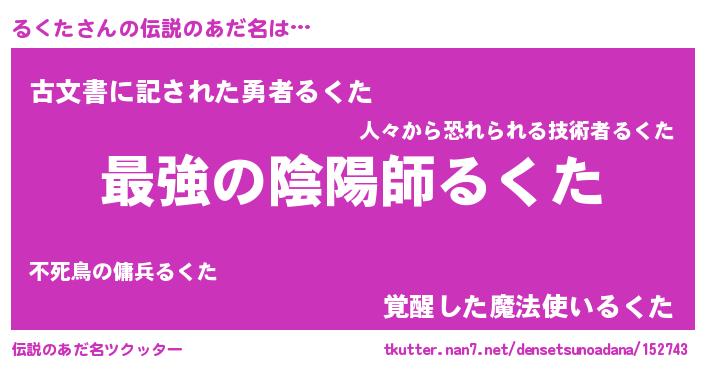 | 意味不明あだ名 | 『ヨモギ科るくた属』『永久保存るくた』 |