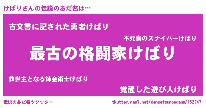 | 意味不明あだ名 | 『けばりフォーエバー』『永久保存けばり』 |
