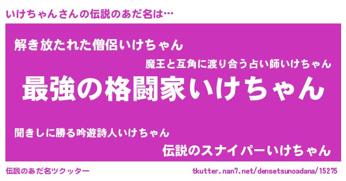 | 意味不明あだ名 | 『自称いけちゃん』『ペロリンいけちゃん』 |