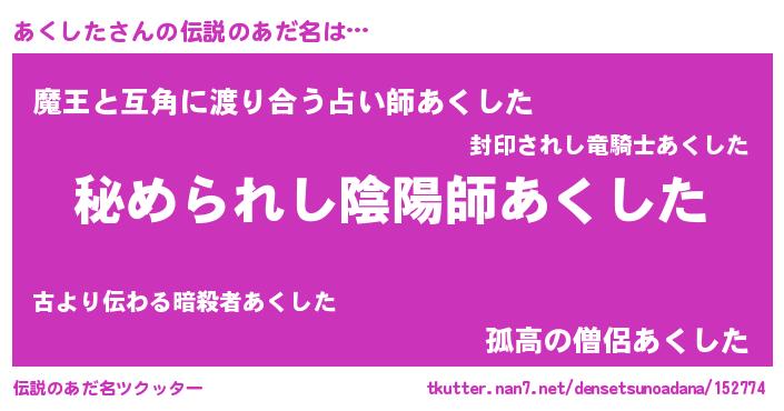 | 意味不明あだ名 | 『あくしたフォーエバー』『自称あくした』 |