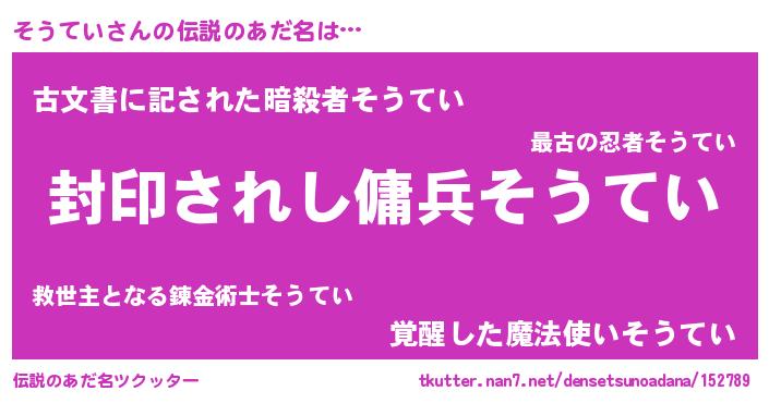 | 男性向けラノベタイトル風あだ名 | 『そうてい~年齢イコール彼女いない歴の魔法使い~』 |